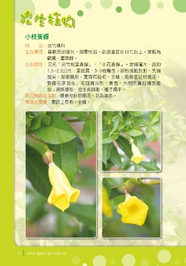 生長習性:又名「夾竹桃葉黃蟬」、「小花黃蟬」。常綠灌木,高約