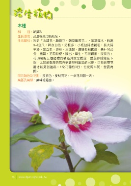 生長習性:別名「水錦花、離障花、朝開暮落花」。落葉灌木,株高