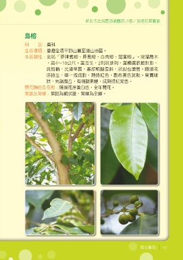 新北市土城區頂埔國民小學/頂埔花草饗宴 島榕 科 別:桑科 生長環境:臺灣全境平野山麓至淺山地區。 生長習性:別名「菲律賓榕、菲島榕、白肉榕、澀葉榕」。常灌喬木 ,高4~10公尺。葉互生,2列狀排列,葉橢圓狀披針形, 具短柄,光滑革質,基部明顯歪斜,狀似台灣島。隱頭花 序腋生,單一或成對,熟時紅色,散布黃色斑點。果實球 狀,先端微凸,有明顯果梗,成熟時紅紫色。 開花顏色及花期:隱頭花序黃白色,全年開花。 葉脈及葉緣:葉脈為網狀脈,葉緣為全緣。 陸生植物 53