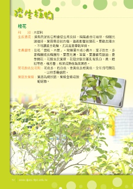 生長習性:別名「銀桂、木犀」。常綠灌木或小喬木;葉子對生,多