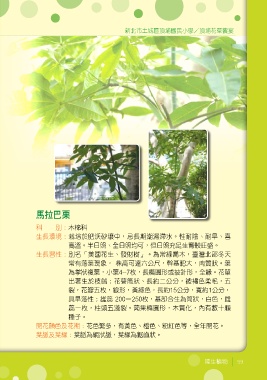 生長習性:別名「美國花生、發財樹」。為常綠喬木,臺灣北部冬天