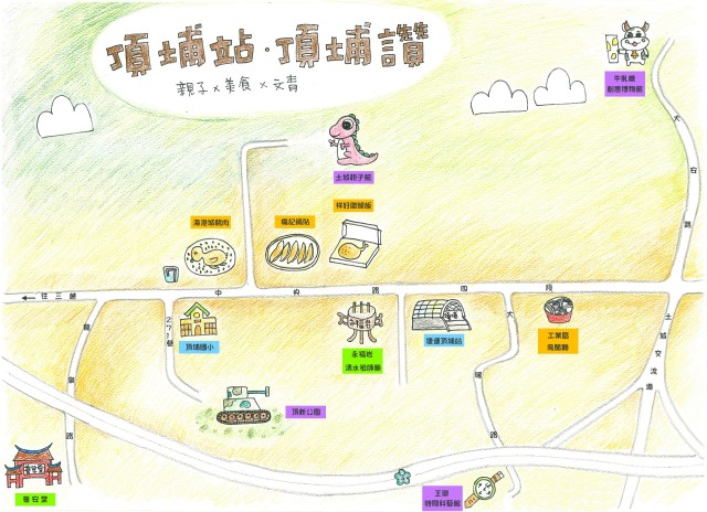 B:這你可別擔心,我們都幫大家想好了。我們很貼心的幫大家規劃了旅遊景點的路線,有美食路線、親子路線和文青路線,只要依照自己的喜好來做選擇就可以囉!而且,我們還製作了「頂埔站頂埔讚」的旅遊地圖,到時可以按圖索驥,就能輕輕鬆鬆的出遊啦!